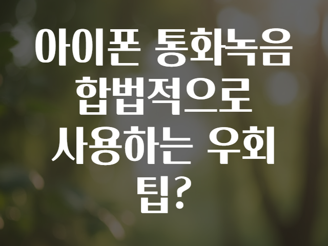 ❓ 아이폰 통화녹음, 합법적으로 쓰고 싶은데 방법이 없을까?
